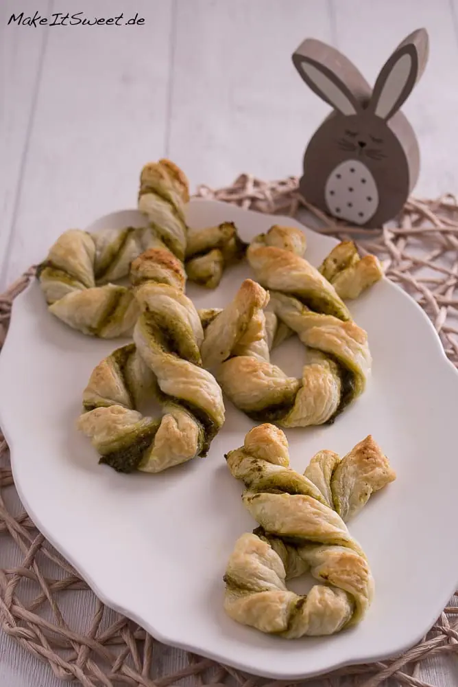 Herzhafte Blätterteig-Hasen mit Pesto – einfaches und schnelles Osterrezept. Perfekt als Snack oder Fingerfood fürs Osterfrühstück oder Brunch!