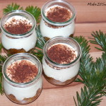 50 g Löffelbiskuit zerkleinern. Wenn das Bratapfelkompott abgekühlt ist, können die Gläser gefüllt werden. Zuerst den zerkleinerten Löffelbiskuit auf den Boden der Gläser geben. Dann das Bratapfelkompott ohne die Flüssigkeit darauf geben und im Anschluss die Vanillecreme darauf verteilen. Zum Schluss mit einem kleinen Sieb 1 TL Kakaopulver darüber streuen. Am besten bis zum Verzehr kalt stellen.