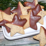 Nach dem Abkühlen der Plätzchen diese zur Hälfte in die Schokolade tunken und auf zum Beispiel einem Gitter gut trocknen lassen. Alternativ kann man die Plätzchen zum Trocknen auch auf ein Backpapier legen. Die Schokolade braucht mehrere Stunden, bis sie fest ist.