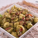 Die Füllung der Tortellini kann nach den eigenen Vorlieben gewählt werden. Das Pesto kann gegen ein anderes ausgetauscht werden.